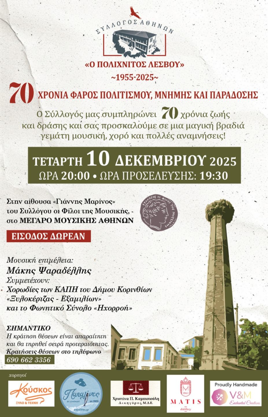 Ο Πολιτιστικός Σύλλογος «Ο Μπάλος» και ο Σύλλογος Πολιχνιατών Αθήνας σας προσκαλούν σε μια ξεχωριστή εκδήλωση αφιερωμένη στον σπουδαίο Λέσβιο μουσι